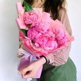 Пионы, розы и эустомы в коробке