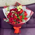 Букет из красных роз и альстромерий