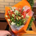 Букет из эустом и красных тюльпанов