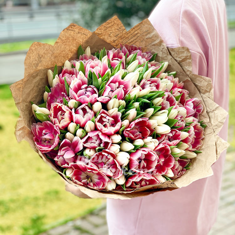 • Фиолетовые и белые тюльпаны, 101 шт.
