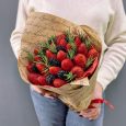 Букет из 11 розовых роз и клубники
