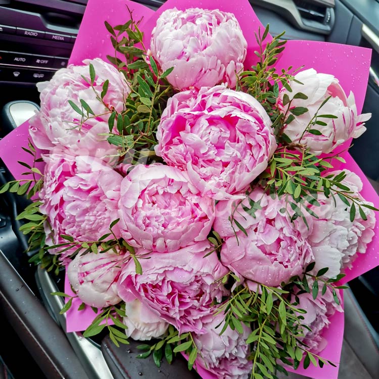 Букет из 13 розовых пионов