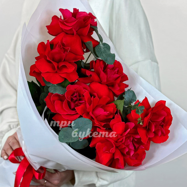 - Красные розы сорта Нина, 7 шт.