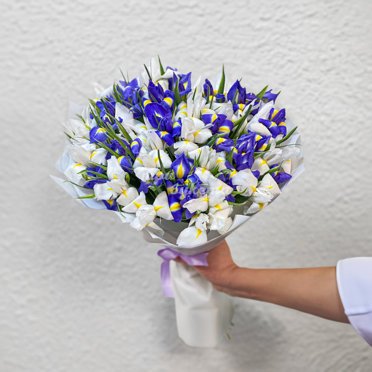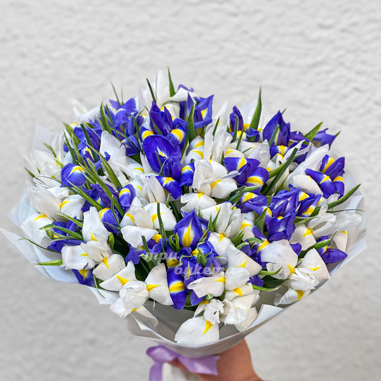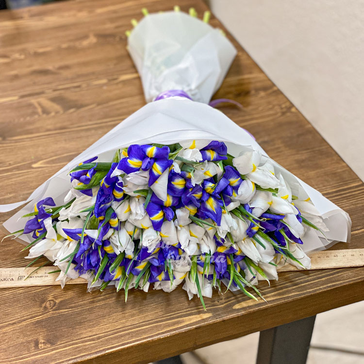 Букет из белых и синих ирисов