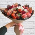 Букет из цветов и фруктов в крафте