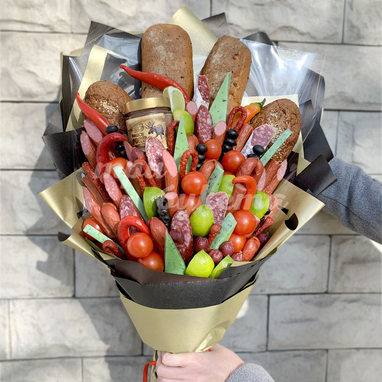 Букет из колбасок, хлеба и паштета