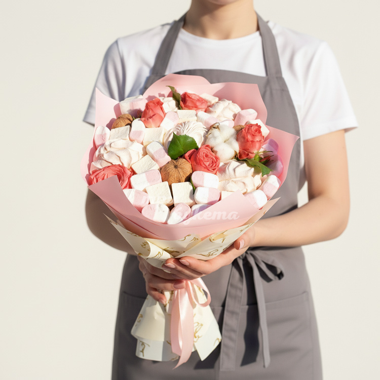 Букет из зефира и грецких орехов