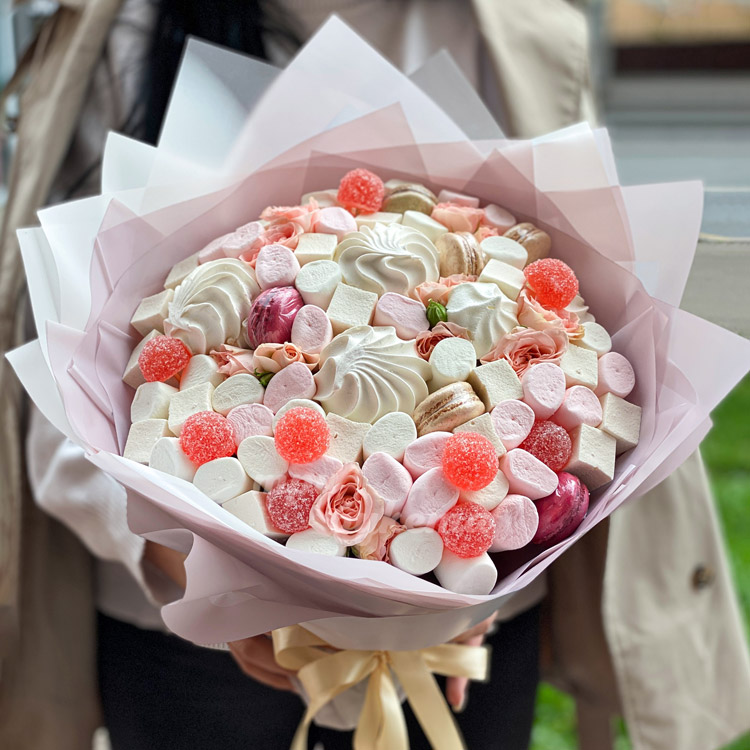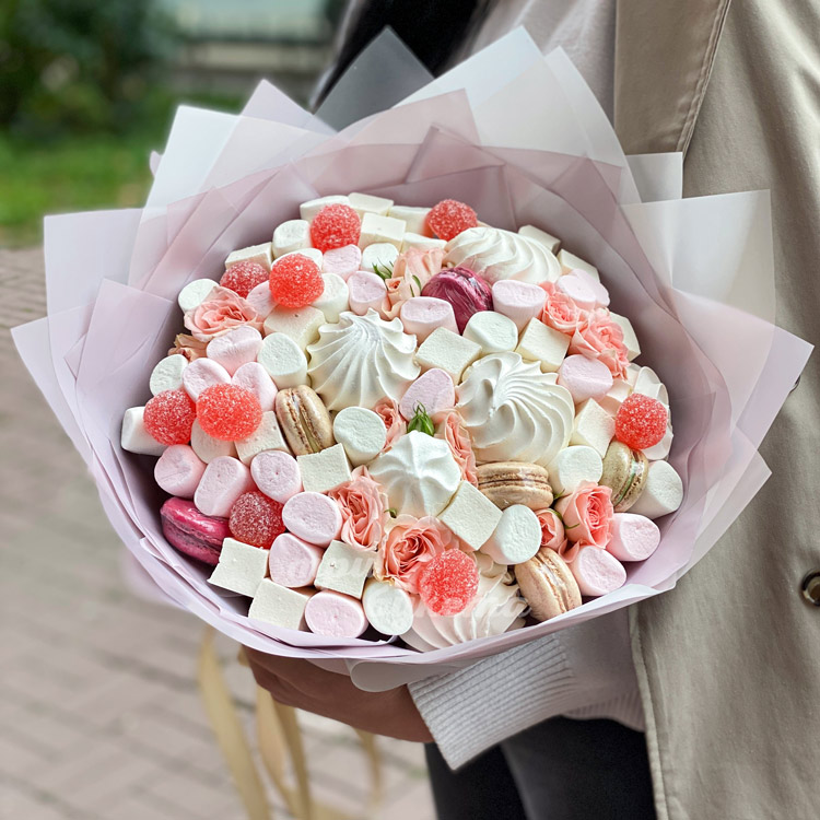 Букет из зефира и кустовых роз
