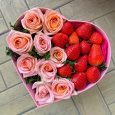 Букет коралловых пионов и куст. роз