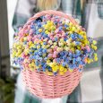 Голубые и розовые гипсофилы в корзине