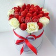Клубника с альстромериями в коробке
