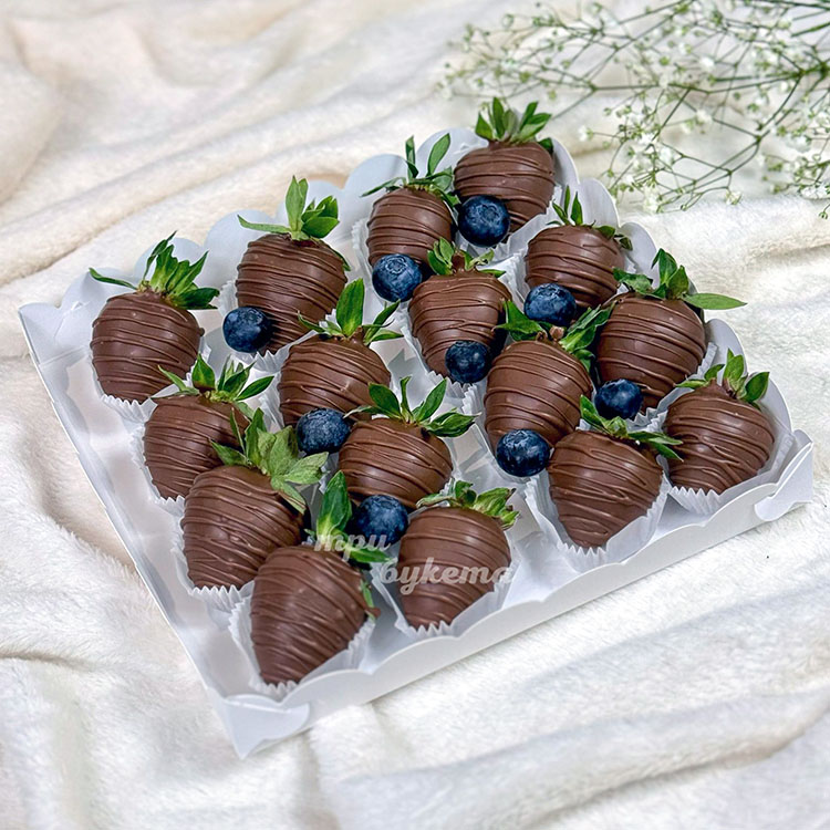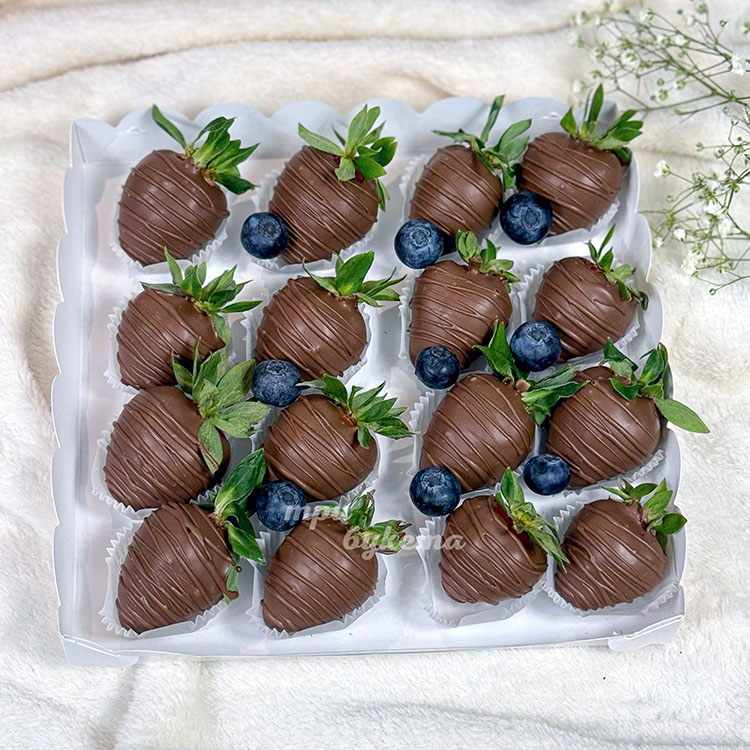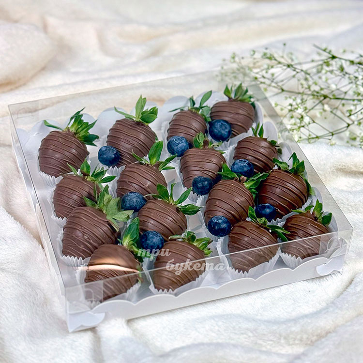 Коробка клубники в шоколаде с голубикой