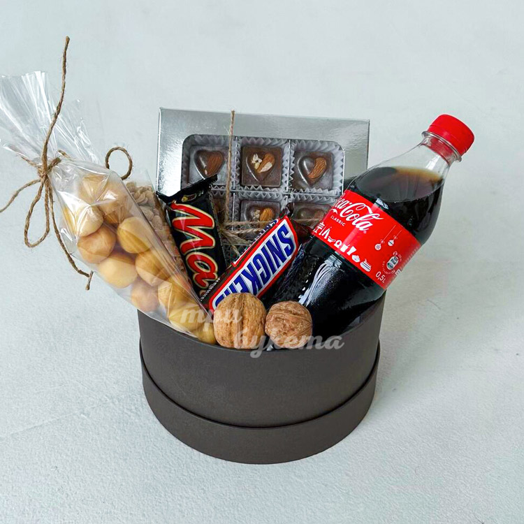 Коробка на 23 февраля с конфетами и снеками