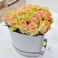 Корзина кремовых кустовых роз с гипсофилой