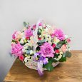Корзина кустовых роз с эвкалиптом