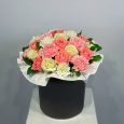 Пионы и розы с тюльпанами в коробке