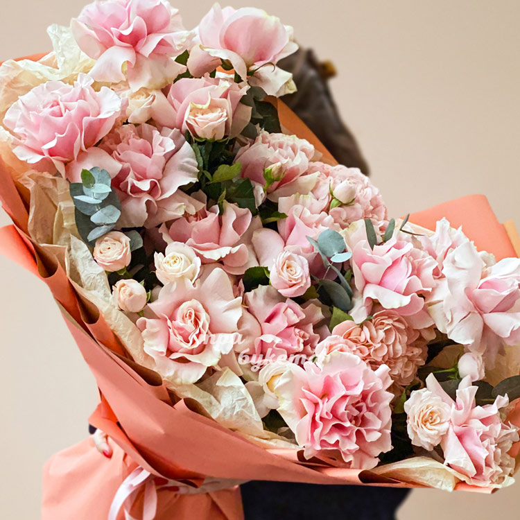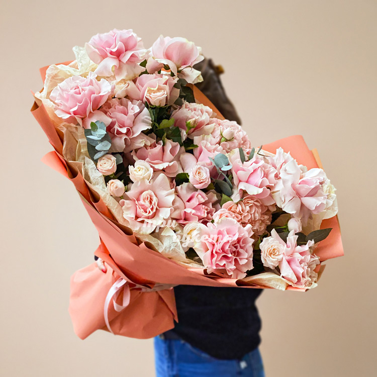 Пышный букет розовых французских роз