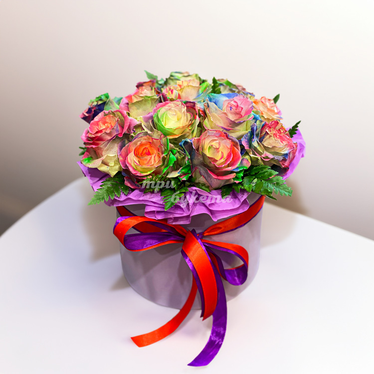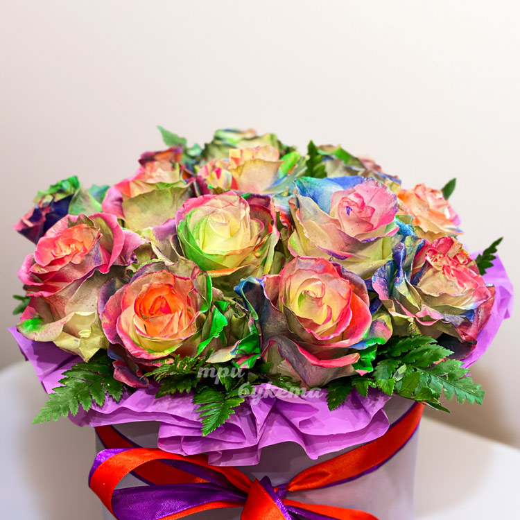 Радужные розы в коробке