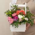 Ранункулюсы и кустовые розы в ящике