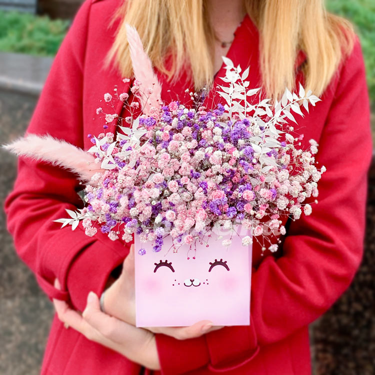 Розовая композиция из гипсофилы