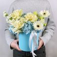Шляпная коробка кремовых роз с орхидеями