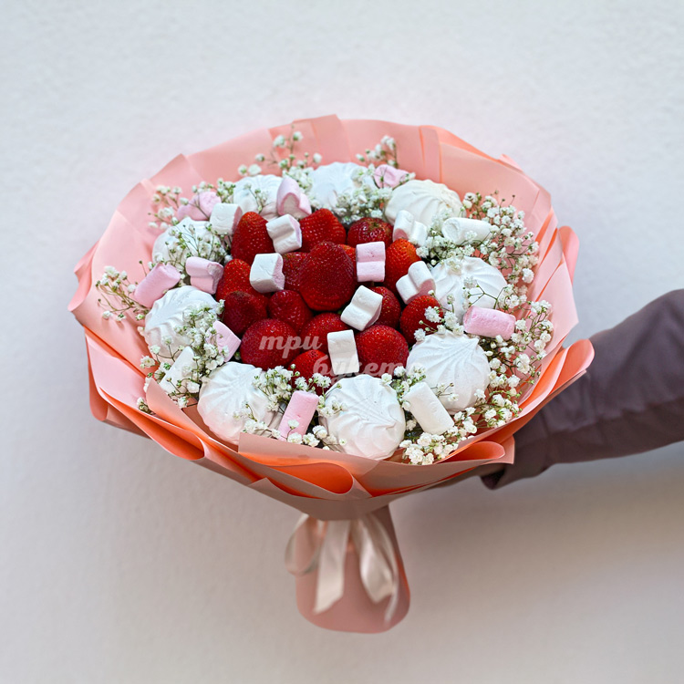 Сладкий букет из зефира и клубники